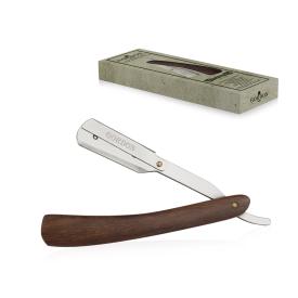 Rasoio barba Gordon a mano libera per mezze lame. Il manico è in legno e il porta lama in acciaio satinato co...